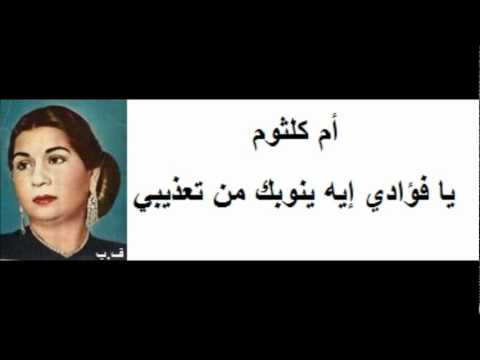 من عمالقة الطرب ( ام كلثوم ) كلمات الاغانى والفيديو ينوبك إيه من تعذيبي